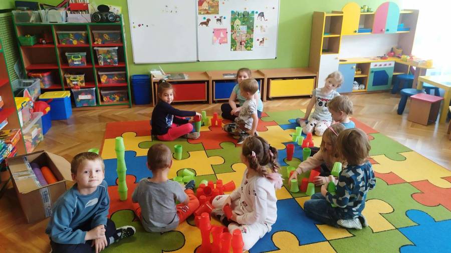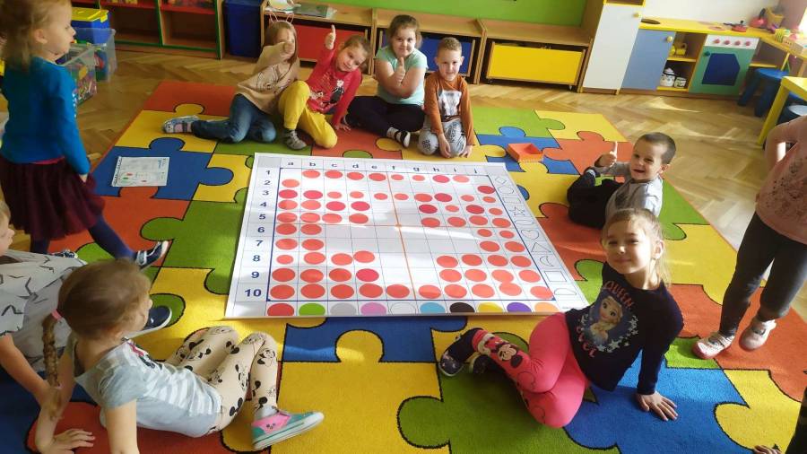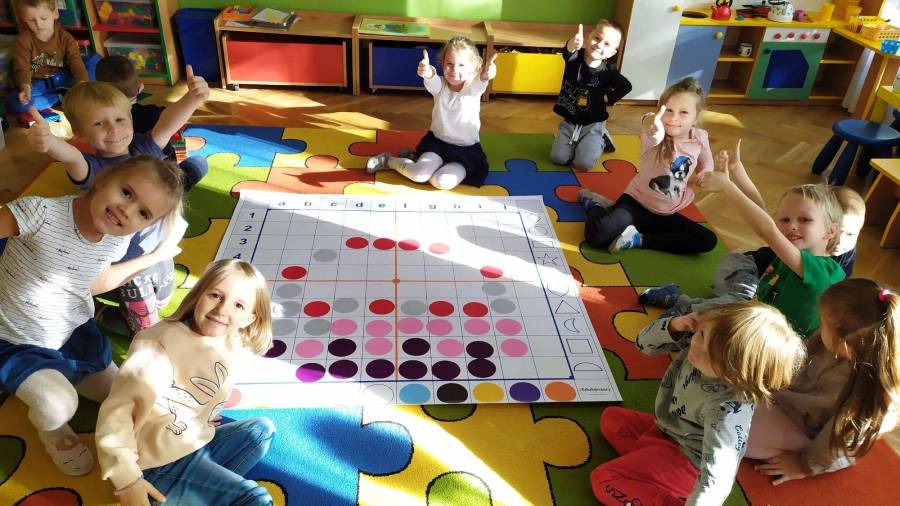 Dzieci z grupy III w październiku zrealizowały kolejne zajęcia w ramach programu "Uczymy Dzieci Programować". Najpierw, za pomocą "Darów jesieni" poszerzaliśmy nasze wiadomości o tej porze roku. Ułożyliśmy wzór na podstawie instrukcji, następnie porządkowaliśmy kasztany, żołędzie i liście według odpowiednich warunków, jak również do naszego, ułożonego z wielką uwagą koszyka, powkładaliśmy dary jesieni właśnie. Innym razem na zajęciach "Dbamy o zdrowie", doskonaliliśmy nasze postawy prozdrowotne. Bezproblemowo odkodowaliśmy wzór na ułożenie apteczki do udzielania pierwszej pomocy przedmedycznej. Powtórzyliśmy informacje nt. działań, które mają pozytywny wpływ na nasze zdrowie. Bez zbędnego wysiłku, w zestawie obrazków, wskazaliśmy dania i produkty, które mają pozytywny wpływ na nasze zdrowie. Następnie układaliśmy wieże z kubków na podstawie podanych wzorów. Zaskoczyło nas, że kubki można układać do góry bądź do dołu dnem:) Prawdziwą frajdę przyniosło nam oczywiście układanie kubków w budowle, które tylko wyobraźnia nam podpowiedziała.