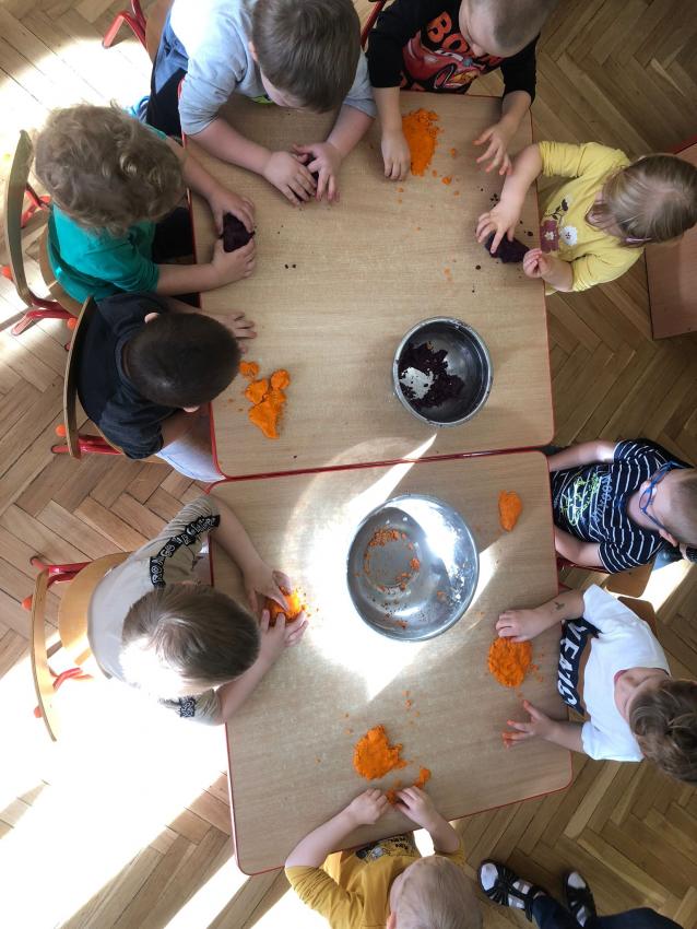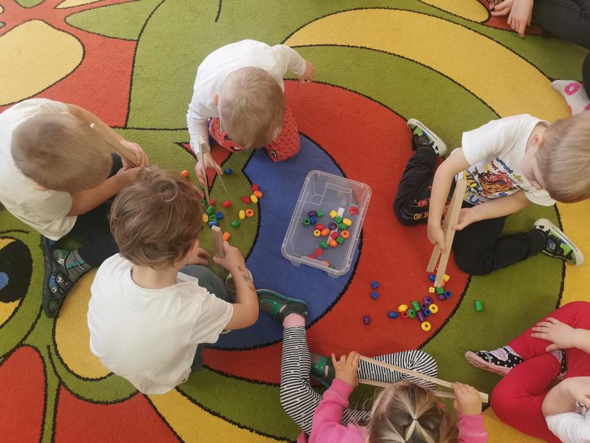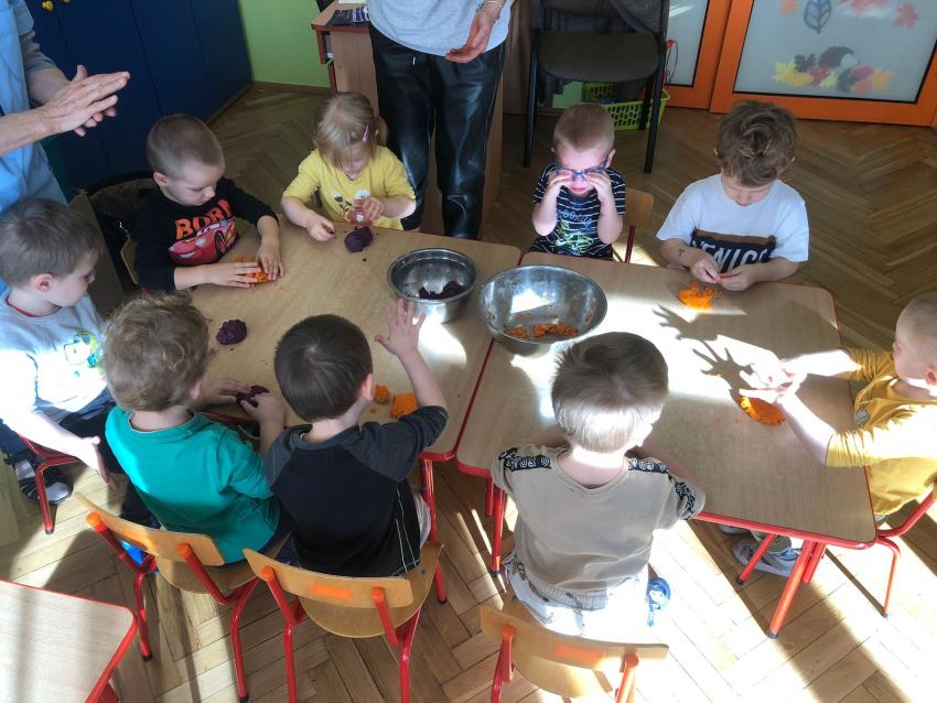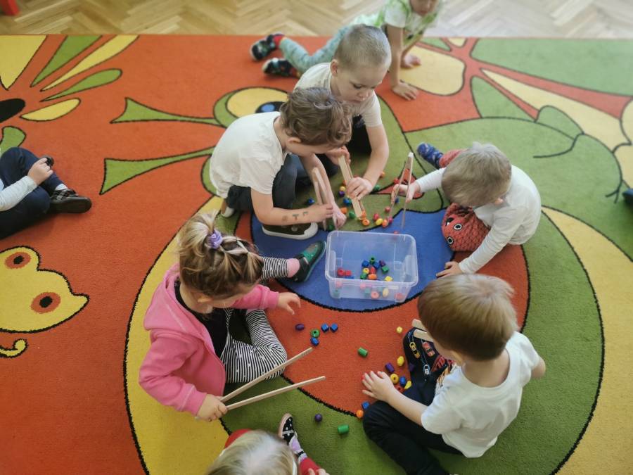 W ramach zajęć z ,,Terapii ręki" rozwijaliśmy sprawność manipulacyjną dłoni, umiejętność chwytu, koordynacje wzrokowo-ruchową wykorzystując do tego szczypce, korale oraz masę księżycową.