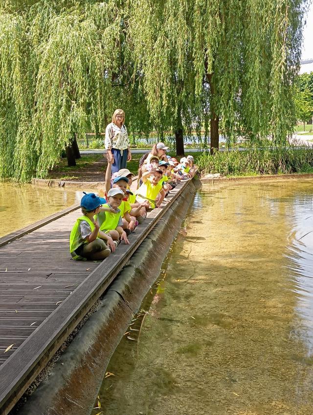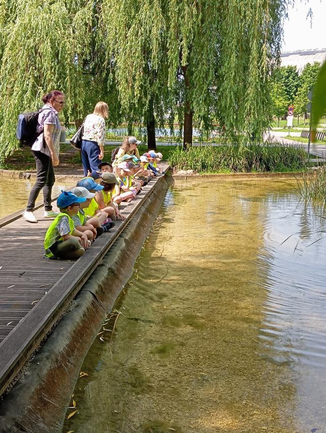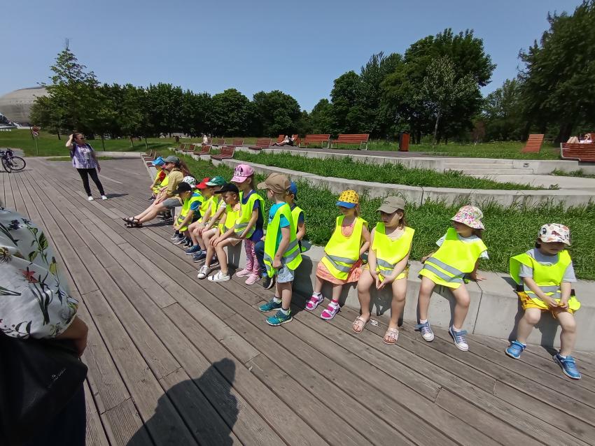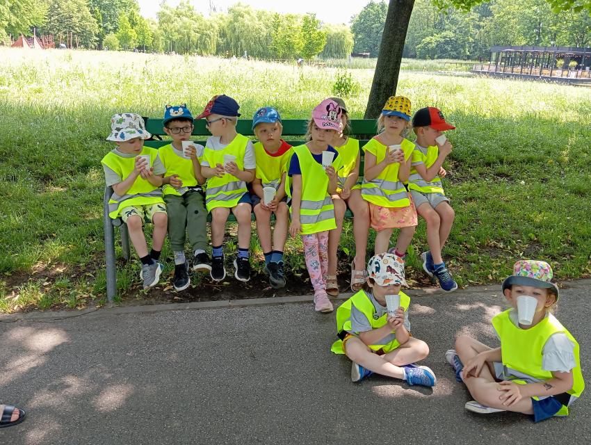 5 czerwca grupa III wybrała się na wycieczkę tramwajem. W parku obok ogrodu doświadczeń podziwialiśmy znajdujące się tam oczka wodne. Zachwycił nas widok kwiatów lilii wodnych. Siedząc na pomoście obserwowaliśmy nurkujące kaczki. W cieniu drzew napiliśmy się wody i poszliśmy wesoło bawić się na placu zabaw.
