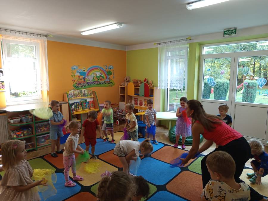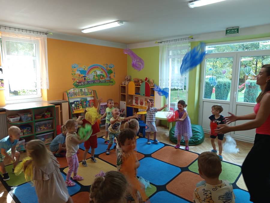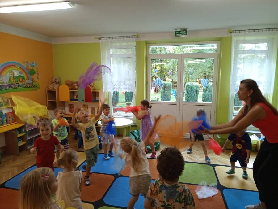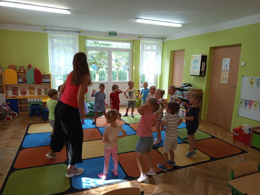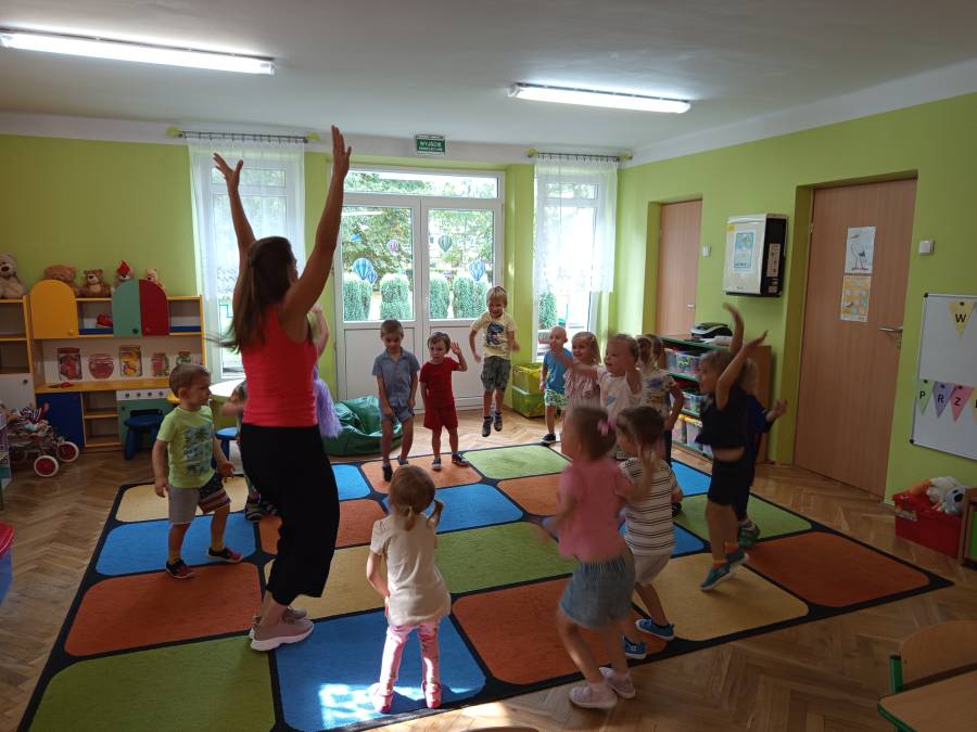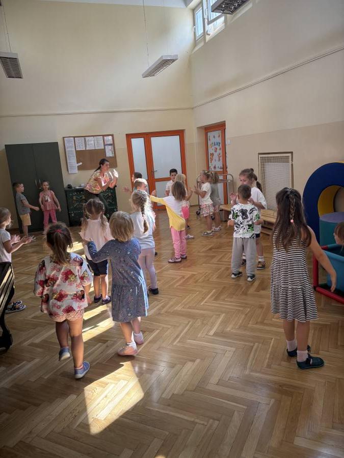 Dziś odwiedziła nas mama Kai i Oskara, która podzieliła się z nami swoimi umiejętnościami, jakimi na codzień posługuje się w swojej zawodowej pracy. I takim oto sposobem mieliśmy wspaniałe zajęcia taneczno rytmiczne.