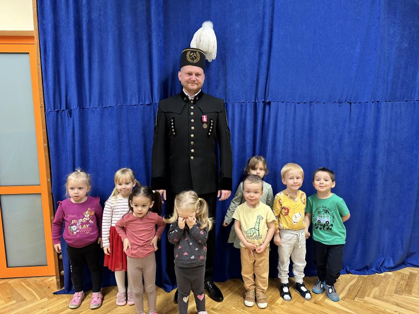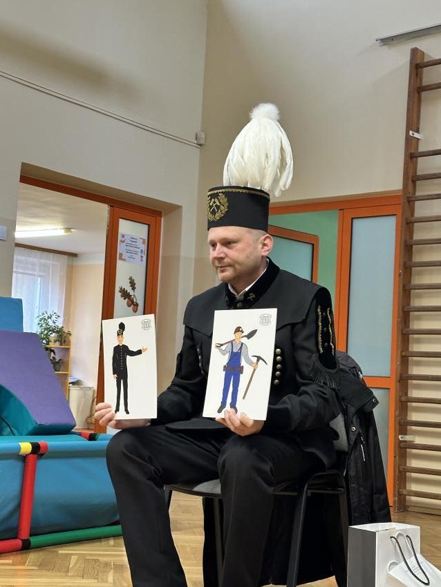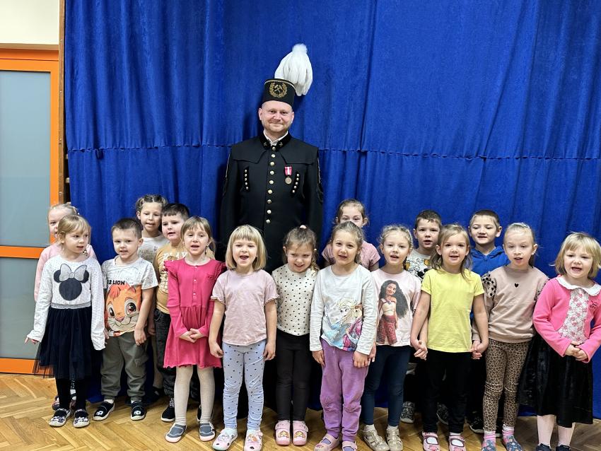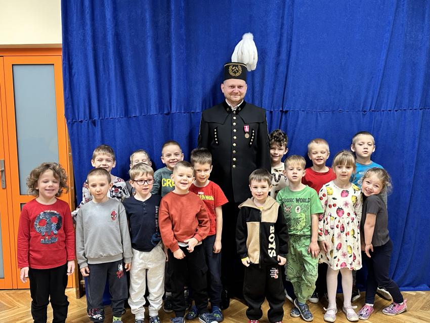 Dziś w przedszkolu odwiedził nas górnik pracujący w Kopalni Soli w Wieliczce. Opowiadał dzieciom o swojej pracy pod ziemią, o tym, jak wygląda kopalnia oraz jakie narzędzia są potrzebne do wydobywania soli. Pokazał elementy górniczego stroju i wyjaśnił znaczenie różnych symboli, np. pióropusza na czapce. Spotkanie było bardzo ciekawe i wzbudziło duże zainteresowanie najmłodszych.