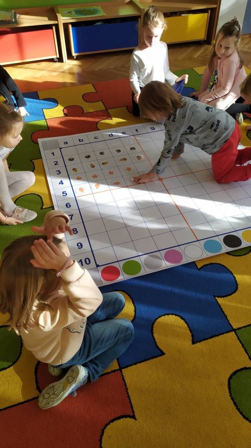 Dzieci z grupy III w październiku zrealizowały kolejne zajęcia  w ramach programu "Uczymy Dzieci Programować". Najpierw, za pomocą "Darów jesieni" poszerzaliśmy nasze wiadomości o tej porze roku. Ułożyliśmy wzór na podstawie instrukcji, następnie porządkowaliśmy kasztany, żołędzie i liście według odpowiednich warunków, jak również  do naszego, ułożonego z wielką uwagą koszyka, powkładaliśmy dary jesieni właśnie. Innym razem na zajęciach "Dbamy o zdrowie", doskonaliliśmy nasze postawy prozdrowotne. Bezproblemowo odkodowaliśmy wzór na ułożenie apteczki do udzielania pierwszej pomocy przedmedycznej. Powtórzyliśmy informacje nt. działań, które mają pozytywny wpływ na nasze zdrowie. Bez zbędnego wysiłku, w zestawie obrazków, wskazaliśmy dania i produkty, które mają pozytywny wpływ na nasze zdrowie. Następnie układaliśmy wieże z kubków na podstawie podanych wzorów. Zaskoczyło nas, że kubki można układać do góry bądź do dołu dnem:) Prawdziwą frajdę przyniosło nam oczywiście układanie kubków w budowle, które tylko wyobraźnia nam podpowiedziała.