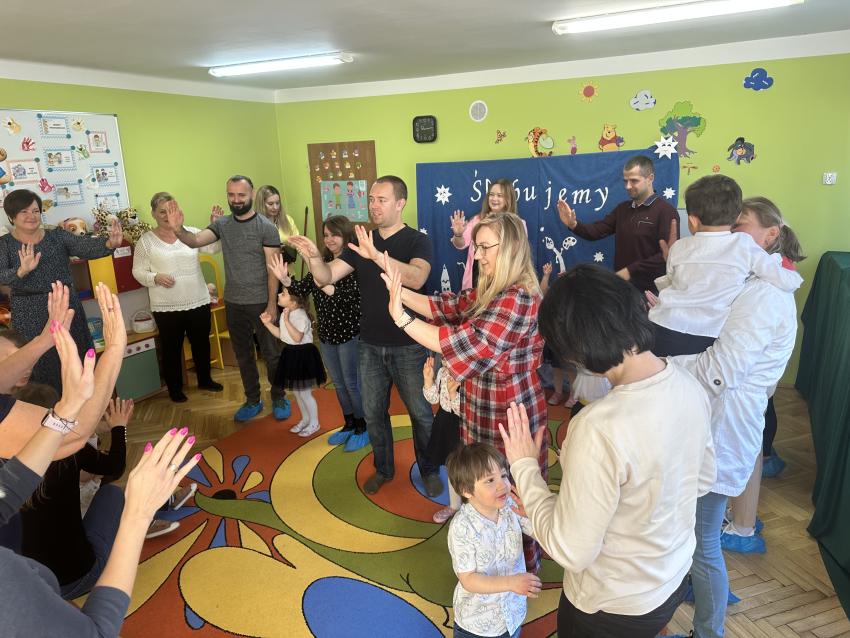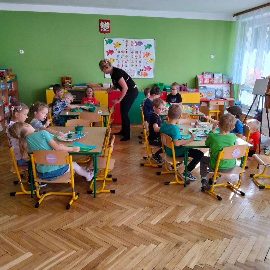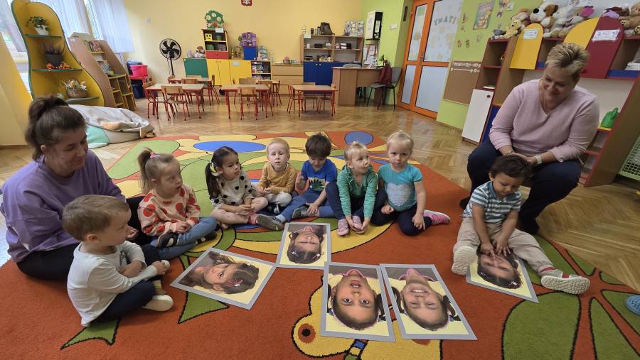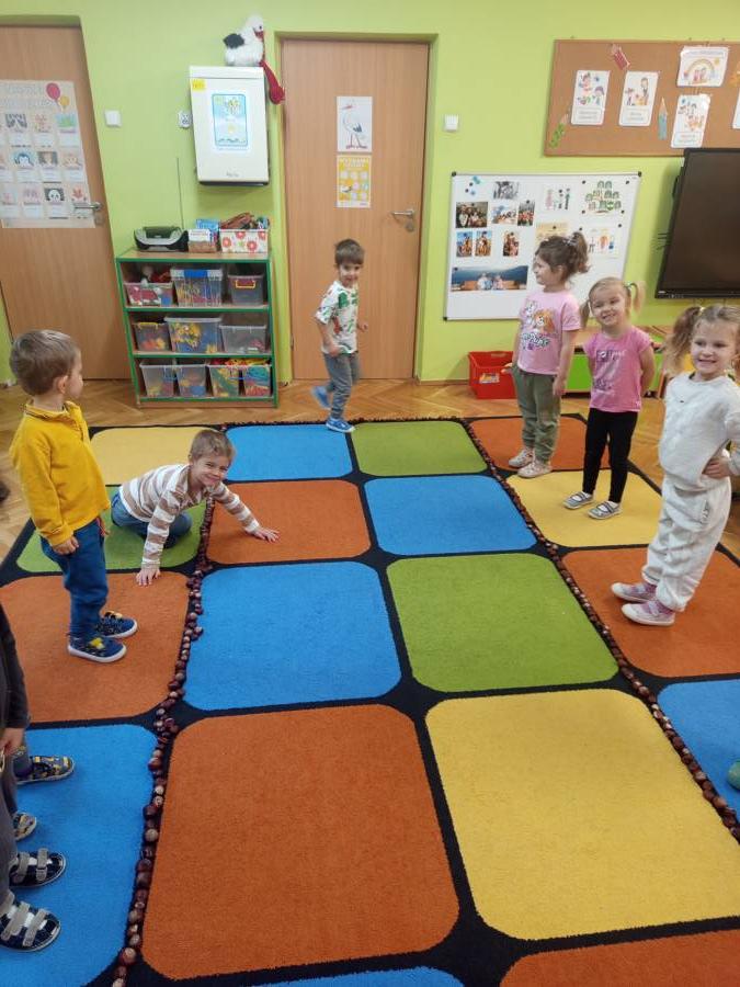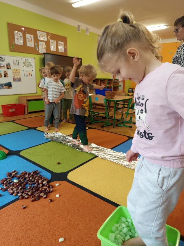 Pierwsze zadanie wykonane. Dzieci otrzymały odznakę ,,mistrz dotyku" bawiąc się przy tym doskonale.