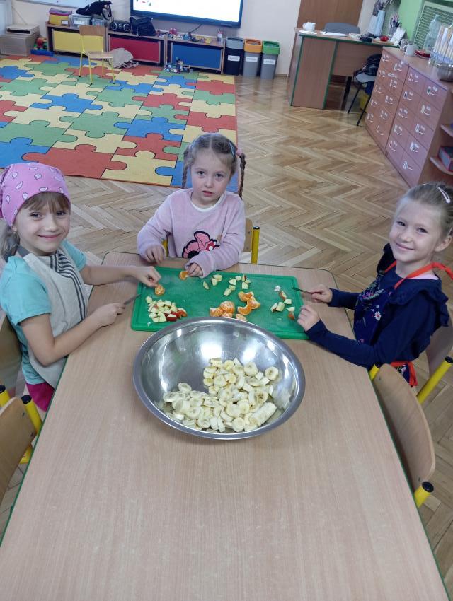 15 października dzieci z grupy Tygrysków zrobiły pyszną i zdrową sałatkę owocową! Próbowaliśmy różnych owoców, dowiedzieliśmy się które są polskie, a które egzotyczne oraz jakie mają witaminy.