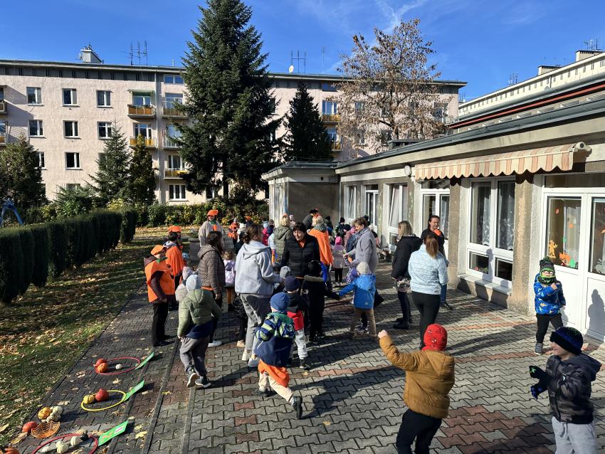 W ostatni październikowy dzień nasz ogród przedszkolny zamienił się w prawdziwą dyniową krainę! Dzieci w kolorowych strojach uczestniczyły w wyjątkowym święcie - DNIU DYNI. Sportowe konkurencje rozgrzały wszystkich do czerwoności od dyniowego slalomu po rzuty do celu. Wspólne odśpiewanie piosenek tworzyło niezwykłą atmosferę. Na zakończenie odbyła się sesja zdjęciowa pełna kolorów, uśmiechów i dyniowych dekoracji.