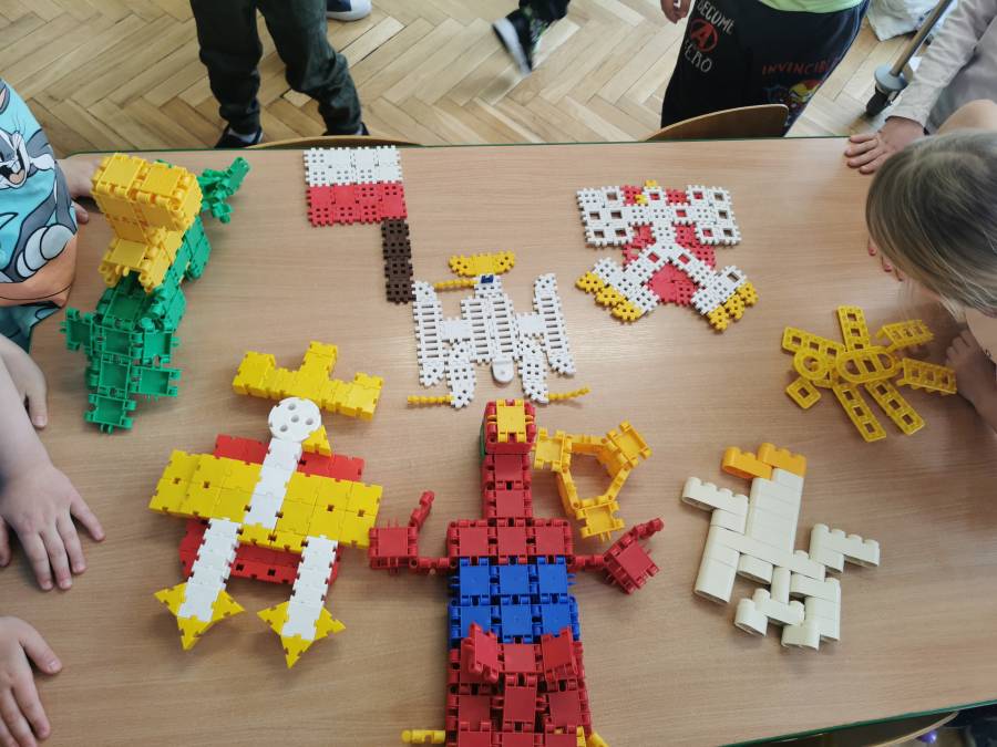 Dzieci z grupy IV wykazały się dużą kretaywnością budując z różnego rodzaju klocków godło naszego kraju.