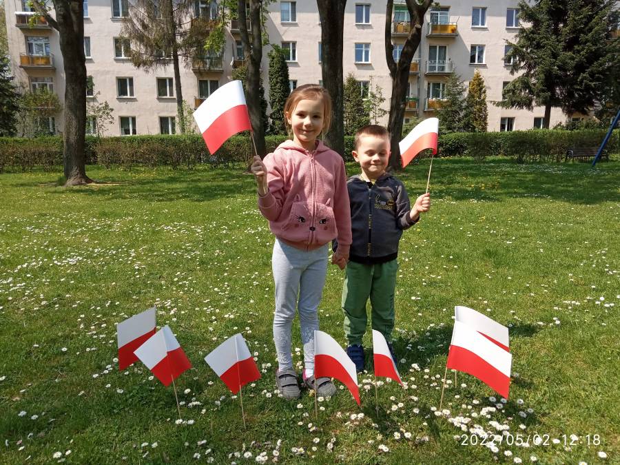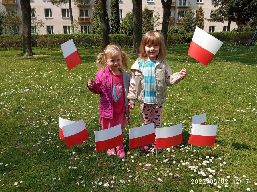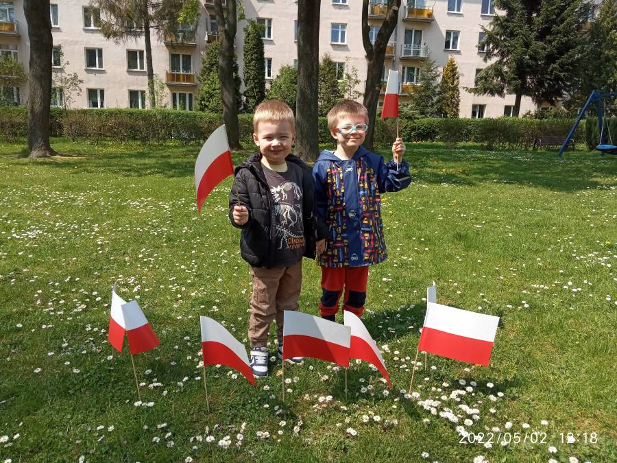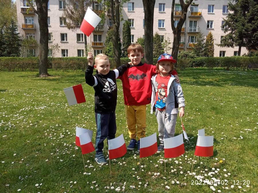Dnia 02.05.2022r obchodziliśmy Święto Flagi. Aby uczcić ten ważny dzień, dzieci wybrały się na spacer wokół naszego ogrodu przedszkolnego z flagami oraz wzięły udział w sesji fotograficznej.