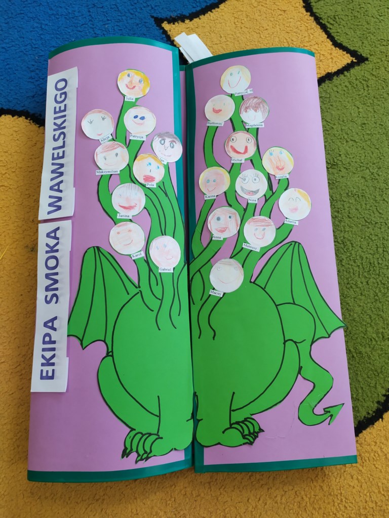 Starszaki z grupy IV, na czas trwania projektu „KOCHAM KRAKÓW-PODRÓŻ PRZEZ HISTORIĘ WEHIKUŁEM CZASU. II edycja: BAJKOWY KRAKÓW W PODANIU I LEGENDZIE” nazywają swoją grupę "Ekipa Smoka Wawelskiego". Udało nam się nawet napisać "Legendę o Ekipie Smoka Wawelskiego", która dumnie krąży między naszymi domami. Oczywiście ilustracje do niej rownież sa naszego autorstwa. Poznały ją również nasi koledzy z grupy II.
