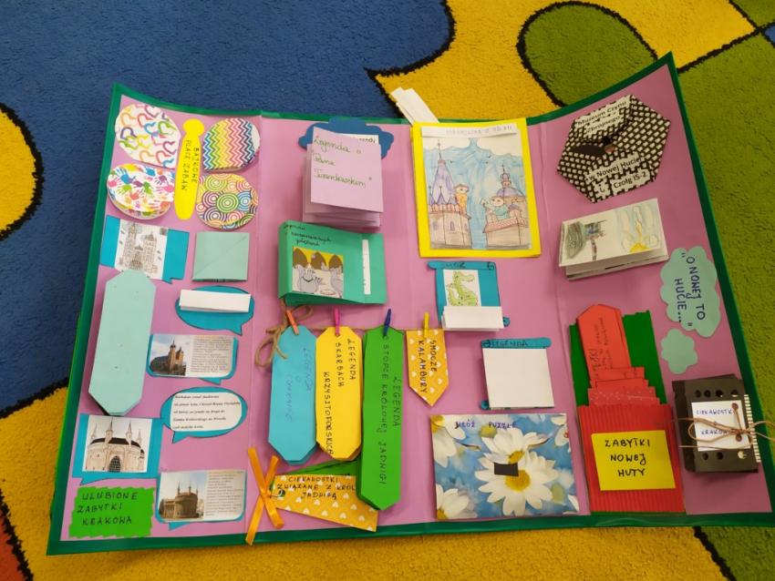 W ramach podsumowania naszego udziału w projekcie przygotowaliśmy lapbook. Dzieci z pomocą rodziców, dziadków, starszego rodzeństwa wyszukiwały niezwykłe materiały i ciekawostki o Krakowie, ulubionych legendach, bajkowych placach zabaw, zabytkach Krakowa i Nowej Huty, w której mieszkamy. W pocie czoła powstało naprawde wyjątkowe dzieło, które możecie podziwiać na zdjęciach.