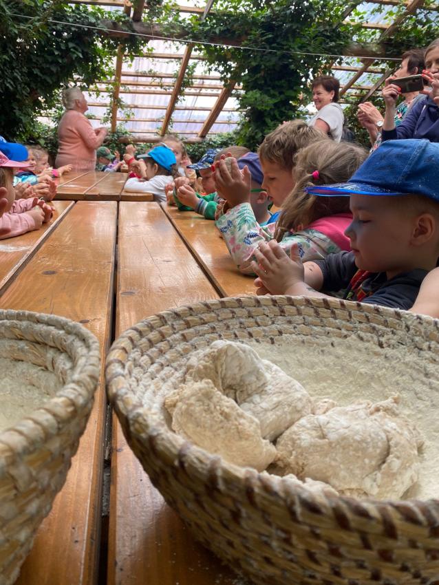 7 czerwca odwiedziliśmy gospodarstwo agroturystyczne w Gruszowie. Dowiedzieliśmy się jak piecze się chleb oraz skąd się bierze mąka razowa. Z panem gospodarzem wybraliśmy się na przejażdżkę traktorem do pobliskiego tartaku. Zobaczyliśmy zwierzęta gospodarskie. Następnie udaliśmy się miejsca, w którym mieszkają pszczoły, była to świetna okazja by dowiedzieć się o życiu pszczół i ich nieocenionej pracy. Kolejnym punktem naszej wyprawy był obiad w postaci pysznych naleśników.