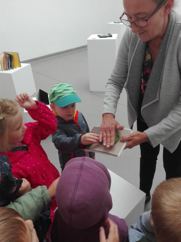 Dzieci oglądały wernisaż ARTBOOK, na którym znajdowały się książki wykonane z różnego tworzywa. Autorami tych książek były zarówno dzieci jak i osoby dorosłe. Najbardziej zainteresowała nas książka z drzewami.