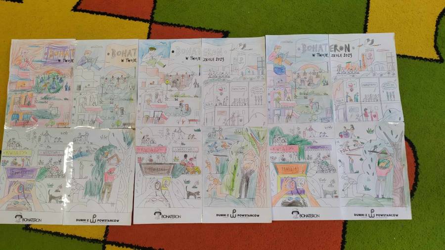 Dzieci z grupy IV wzięły udział w tegorocznej edycji akcji: BohaterON w twojej szkole. Akcja ma na celu upamiętnienie i uhonorowanie uczestników Powstania Warszawskiego, promocję postaw patriotycznych oraz historii Polski XX wieku. Starszakom bardzo podobały się zajęcia pt. ?Lekcja bohaterstwa?. Dzięki temu mimo, że jeszcze mali, już wiedzą, że można zostać bohaterem, nawet, gdy nie ma wojny i jest się dzieckiem. Prawdziwym zaskoczeniem była dla nas informacje, że Dzień Niepodległości w Polsce jak i Angoli obchodzi się 11 listopada.