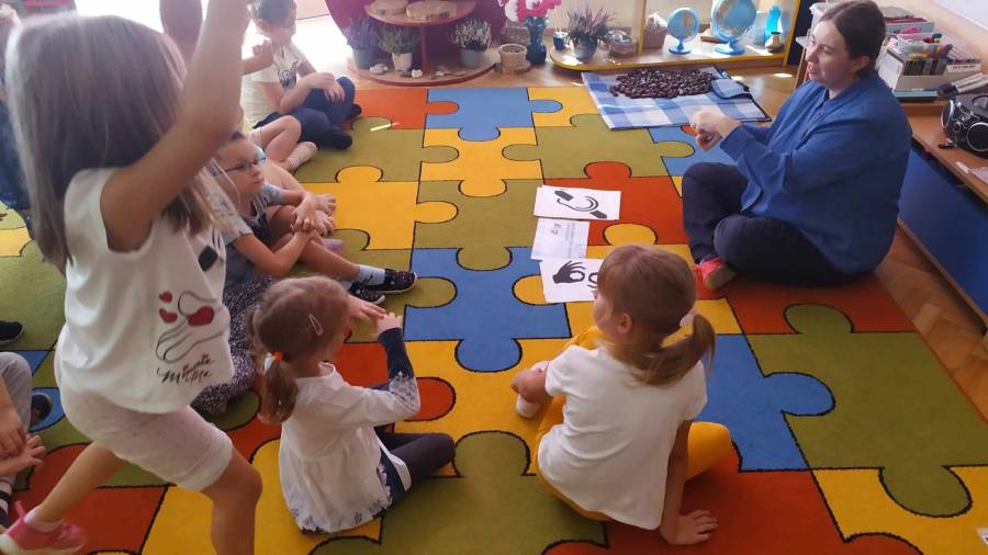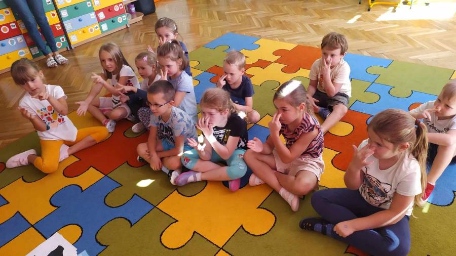 Dzieci z grupy IV zrealizowały kolejne zadania w ramach Ogólnopolskiego Projektu ?Każdy inny ? wszyscy równi?. 29 września zorganizowaliśmy Dzień Osób Niesłyszących i Języka Migowego. Dowiedzieliśmy się, że w uchu jest i młoteczek i kowadełko i nawet ślimak???? Uczestniczyliśmy także w mini-lekcji języka migowego, którą zorganizowała dla nas pani Ada.