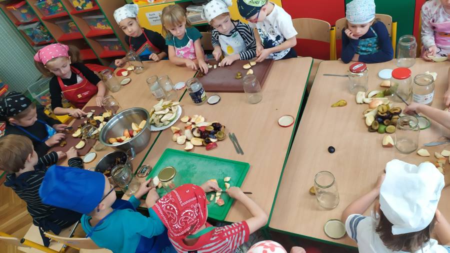 Grupa IV, wzorem roztropnej wiewiórki, przygotowała jesienne przetwory. Już nie możemy się doczekać, gdy zimą wypijemy przepyszne kompoty, które zrobiliśmy sami.