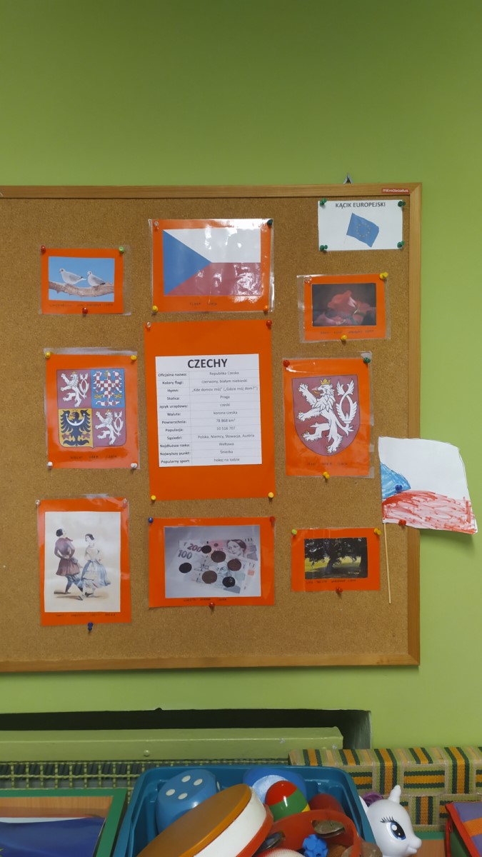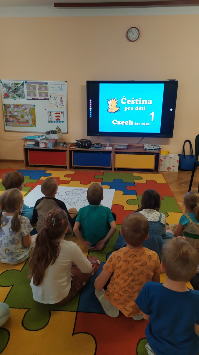 W ostatnim tygodniu października, dzieci z grupy IV poszerzały swoją wiedzę i zainteresowania w ramach innowacji pedagogicznej: Jestem Europejczykiem. Tym razem wybraliśmy się do Czech. Minikurs języka czeskiego podobał nam się bardzo i byliśmy zdziwieni, że sporo słów brzmi prawie tak samo jak w języku polskim. Dzięki zdjęciom zabytków i ciekawych miejsc w Czechach, okazało się, że niektórzy z nas zwiedzili już kraj naszych sąsiadów. I tym razem nie zawiodła pani Agnieszka, która zaplanowała kilka przysmaków kuchni czeskich. Nasze podniebienia najbardziej uraczył smażony ser.
