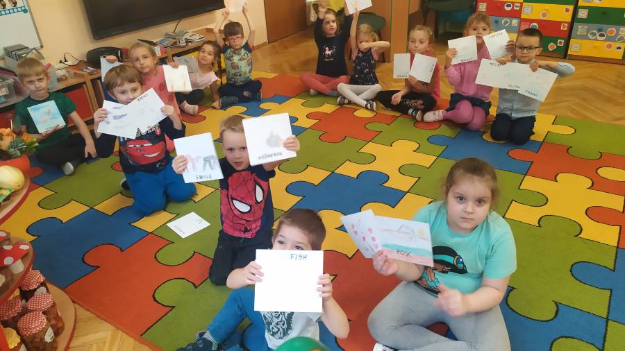 W grupie IV realizacja zadań w ramach Ogólnopolskiego Projektu Edukacyjnego "Angielski jest fun-tastyczny" idzie pełną parą. Tym razem przygotowaliśmy swoje własne karty obrazkowe - flashcards. Najpierw zgłaszaliśmy swoje propozycje, okazało się, że sporo już potrafimy powidzieć w języku angielskim. W drodze głosowania okazało się, że wzbogaciliśmy nasz kącik języka angielskiego o karty z kategorii: "animals".