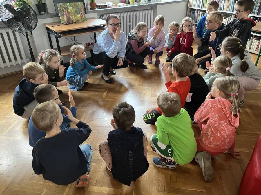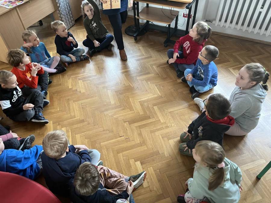 Starszaki wzięły udział w ciekawej lekcji bibliotecznej. Pani bibliotekarka opowiedziała o zakamarkach tego niezwykłego miejsca oraz o tym jak stać się czytelnikiem. Każdy z nas mógł poczuć się jak artysta tworząc dzieło sztuki oraz przygotował zakładki z godzinami otwarcia biblioteki.