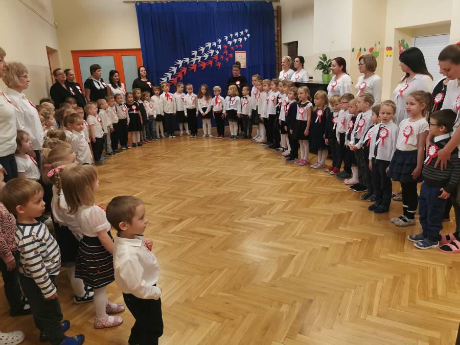 W tym roku po raz kolejny nasze przedszkole włączyło się w ogólnopolską akcję ?Szkoła do hymnu?. Dzieci z wszystkich grup uroczyście odśpiewały hymn państwowy.