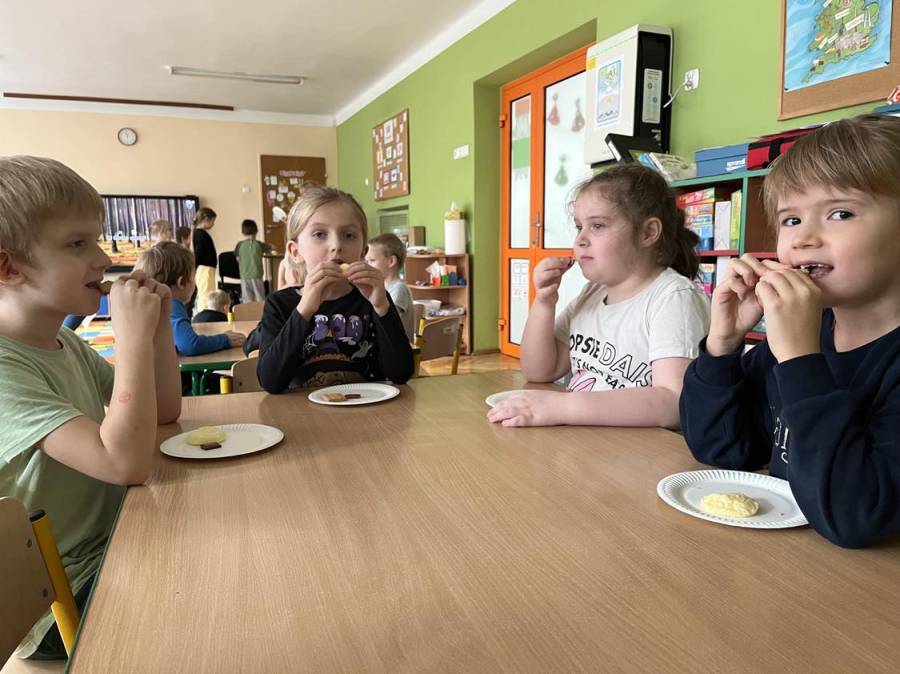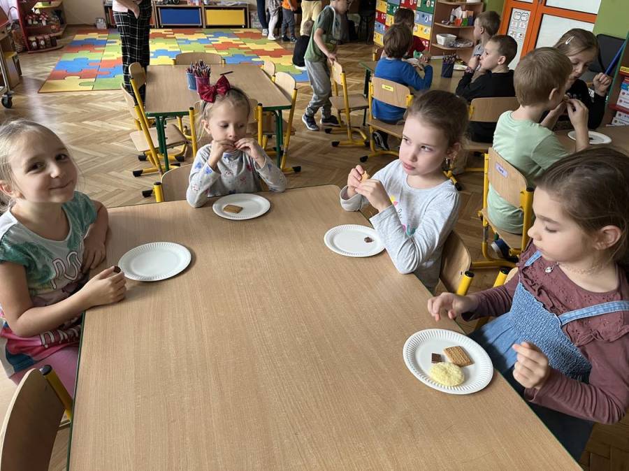 Dzieci z grupy IV zrealizowały kolejne zadanie w ramach projektu: Każdy inny-wszyscy równi. Tym razem zorganizowaliśmy Światowy Dzień Cukrzycy. Wiemy, że to jedna z wielu chorób, którymi nie zaraża się jak zwykłym katarem:) Sympatyczny Miś Radek ze Słodkiej Jedynki opowiedział nam kilka ciekawych faktów o cukrzycy. Czy wiedzieliście, że zwierzęta też na nią chorują? Zaprojektowaliśmy przykładowe dania dla diabetyków. Najbardziej jednak podobała nam się degustacja przysmaków bez cukru. Jakież było nasze zdziwienie, gdy okazało się, że one są naprawdę smaczne:)