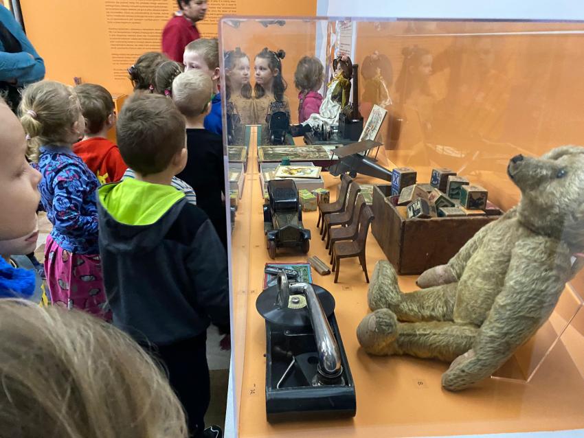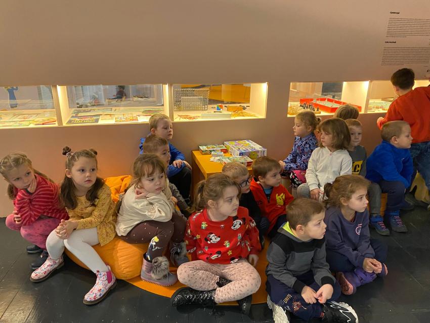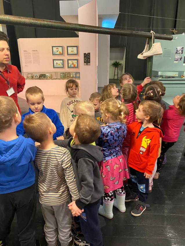 W dniu 21.11.2023 dzieci z grupy trzeciej odwiedziły Muzeum Nowej Huty, gdzie obejrzeliśmy wystawę ,,Trzepaki, Reksio, Atari"