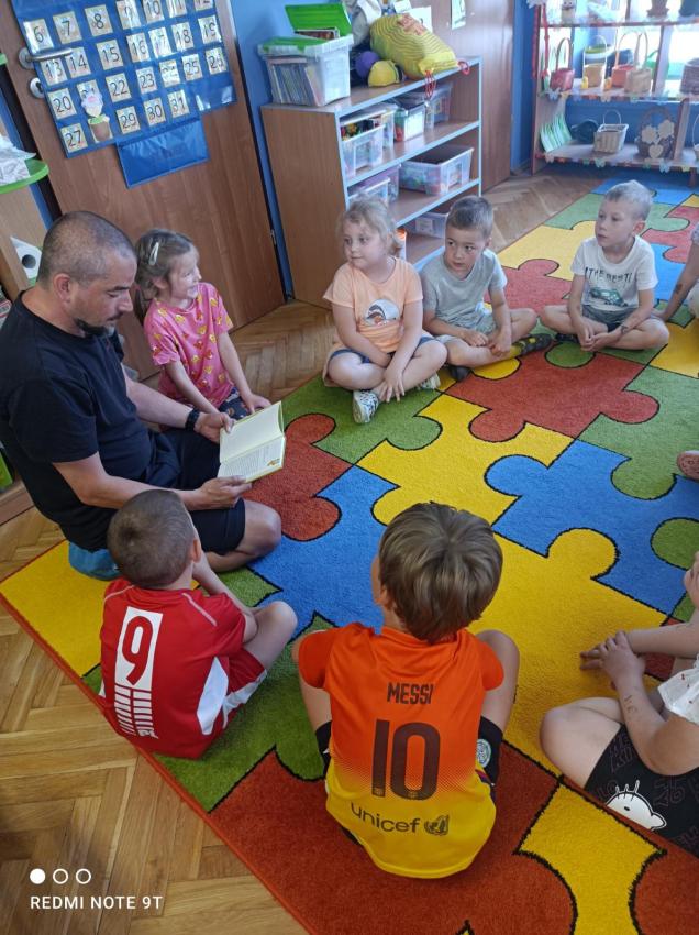 Niezwykle miło było gościć tatę Agatki, który odwiedził naszą grupę by przeczytać ciekawe przygody ,,Detektywa Pozytywki". Pan Marcin zadawał nam pytania a my chętnie na nie odpowiadaliśmy. Przecież to oczywiste, że jesteśmy czujni i słuchamy uważnie ponieważ uwielbiamy poznawać nowe przygody i ciekawych bohaterów. Akcja ,,Cała Polska czyta dzieciom" jak widać ma się dobrze i przynosi realne korzyści. Ciekawe kogo ugościmy następnym razem :) zapraszamy :)