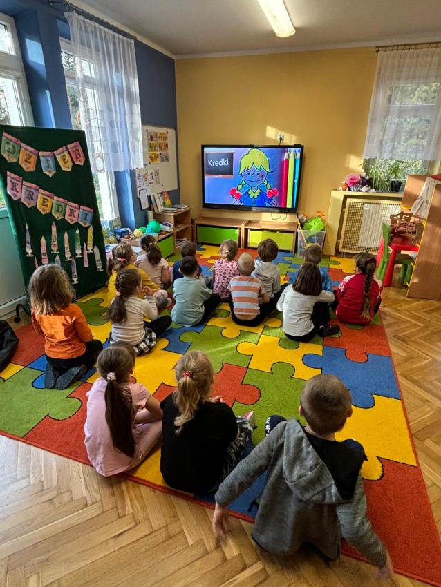 Z okazji dnia kredki w naszej grupie odbyły się ciekawe zajęcia. Wysłuchaliśmy ciekawej bajki M. Musierowicz o sytuacji w pewnej zerówce i o kredkach. Z pomyślnością rozwiązaliśmy quiz o kredkach, układaliśmy kompozycje z kredek według wzoru, wykonaliśmy w grupach prace plastyczne techniką wydzieranki na koniec każde dziecko dostało medal. :)