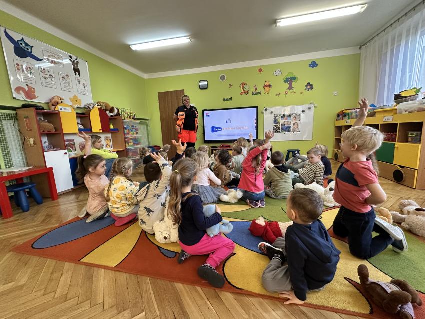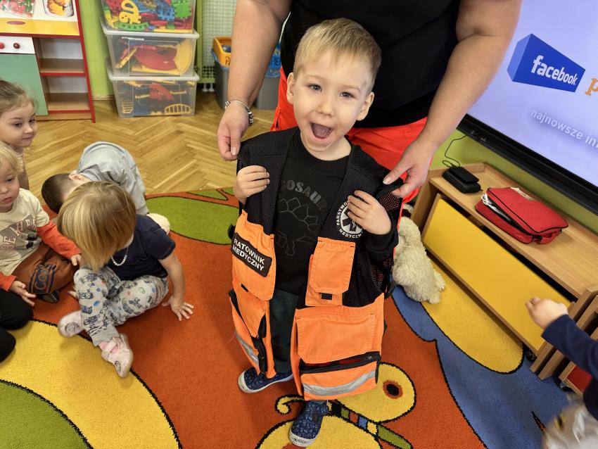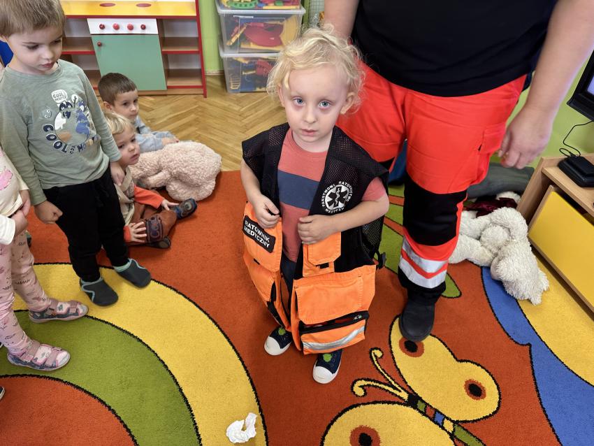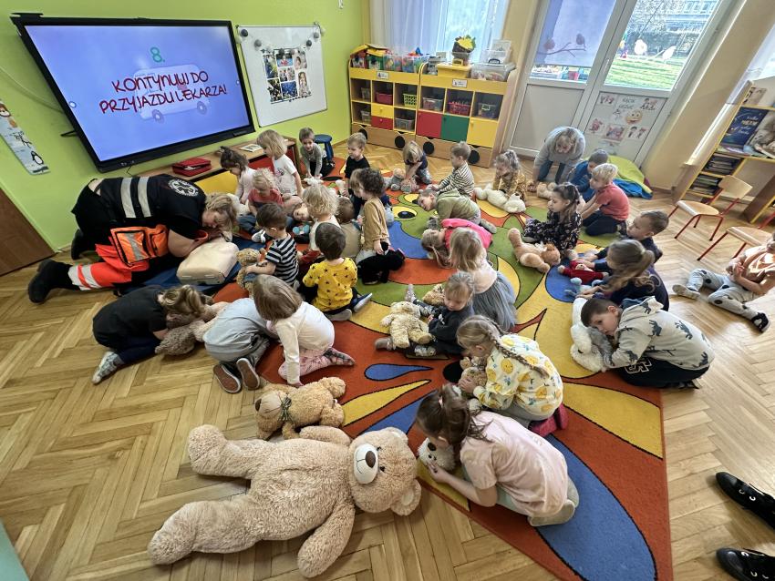 ?Ratujmy misia? to kampania, której celem jest upowszechnienie wiedzy na temat udzielania pierwszej pomocy przedmedycznej. Dzieci podczas zajęć zapoznały się z wizerunkiem ratownika, jak należy udzielać informacji dzwoniąc pod numer alarmowy, zapoznały się z podstawowym wyposażeniem ratowniczym oraz na swoich misiach wykonały masaż serca i sztuczne oddychanie.