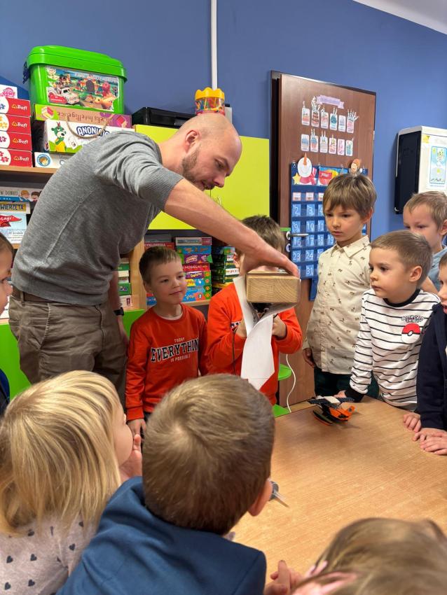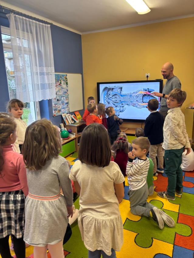 Pan Kajetan, tata Frania z 2 gr i Leona z gr 4 odwiedził nas i opowiedział jak to właściwie jest możliwe, że samoloty latają. Synowie jako asystenci wraz z tatą zademonstrowali nam doświadczenia, które pomogły zrozumieć to ciekawe zagadnienie. Miło było nam gościć rodzica, który zdradził nieco z tajemnic czym zajmuje się zawodowo, pomaga nam to dostrzec różnorodność i mnogość dróg zawodowych którymi w przyszłości możemy pójść. . :)