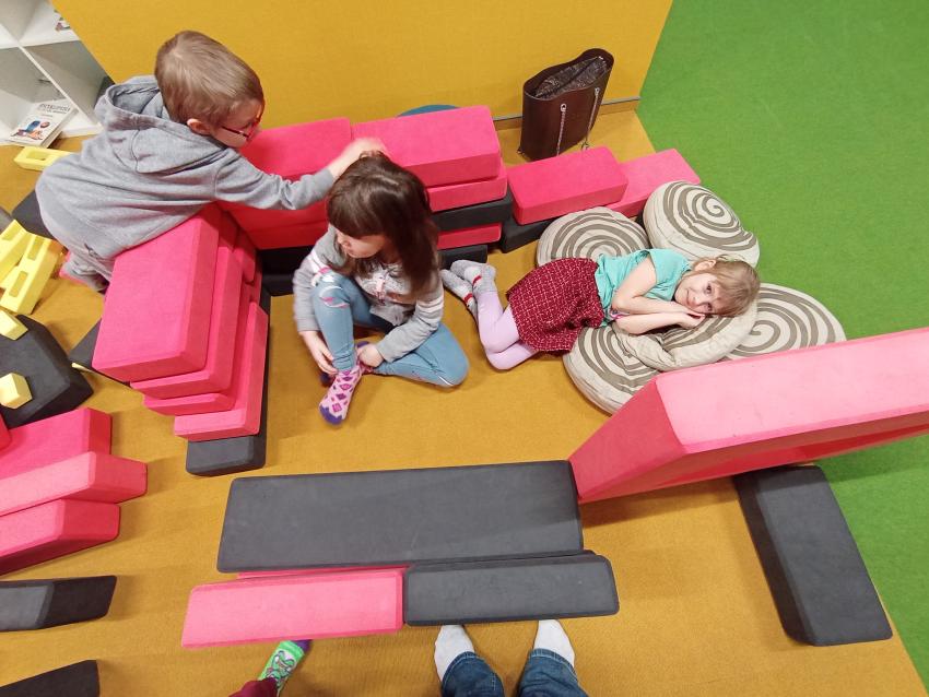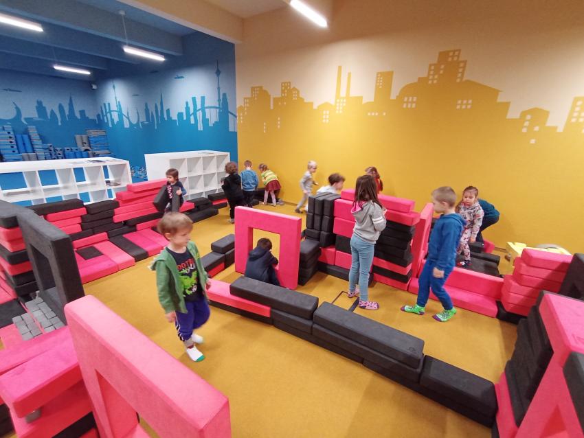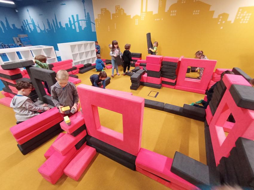 Grupa III na wycieczce w Muzeum Inżynierii i Techniki ul. Wawrzyńca. Zabawy w strefie klocków.