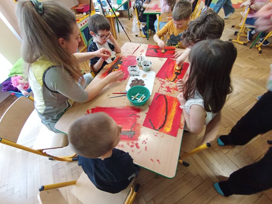 Dzieci i panie z grupy III dziękują p. Agnieszce, mamie Filipa za wprowadzenie nas w świat tajników malarstwa!:)