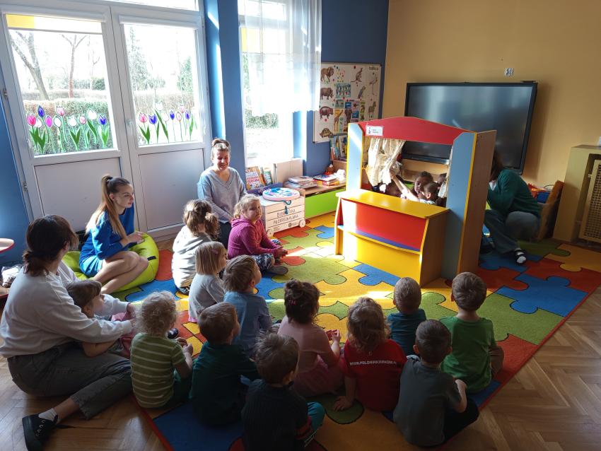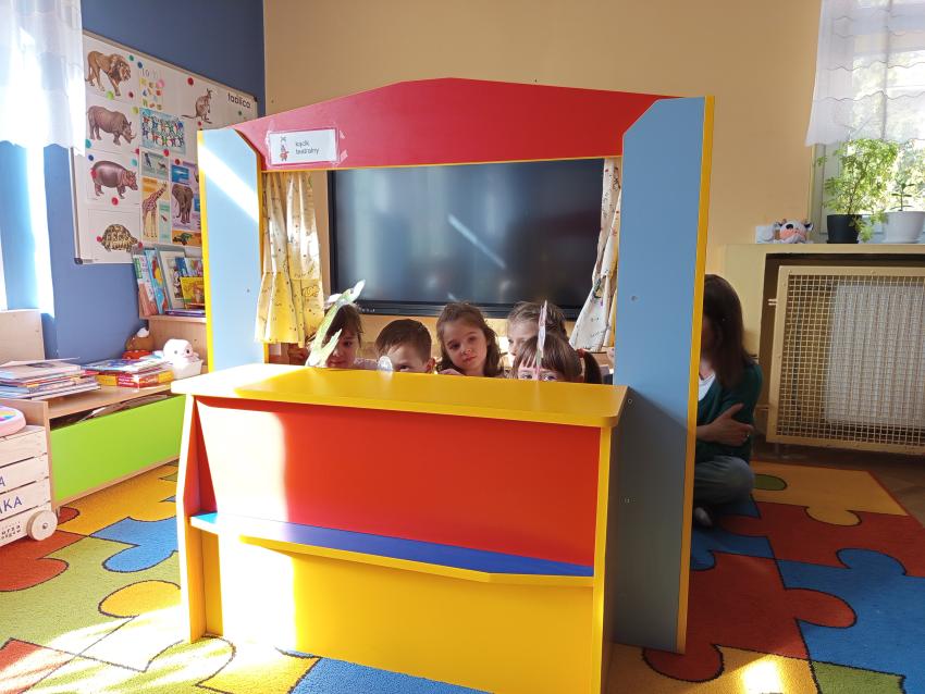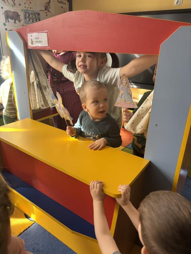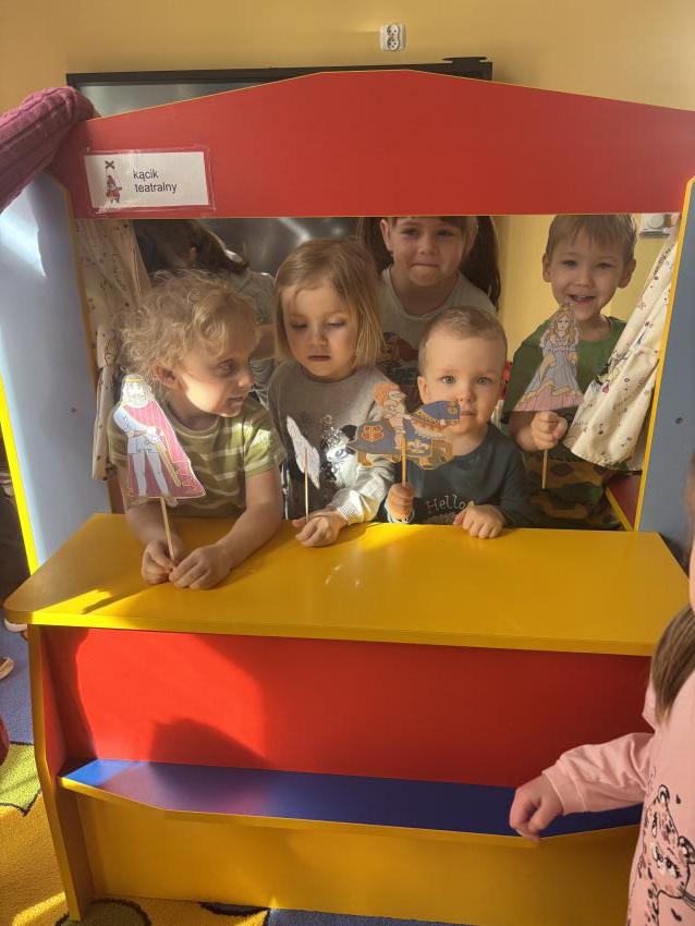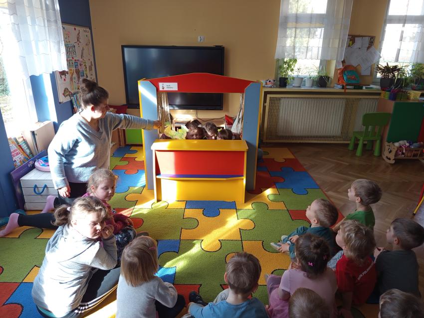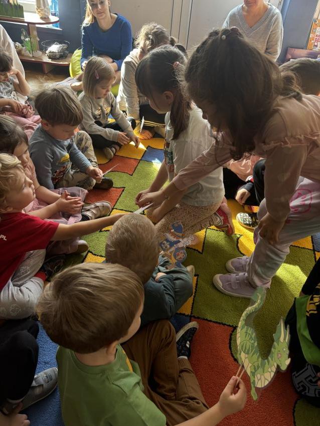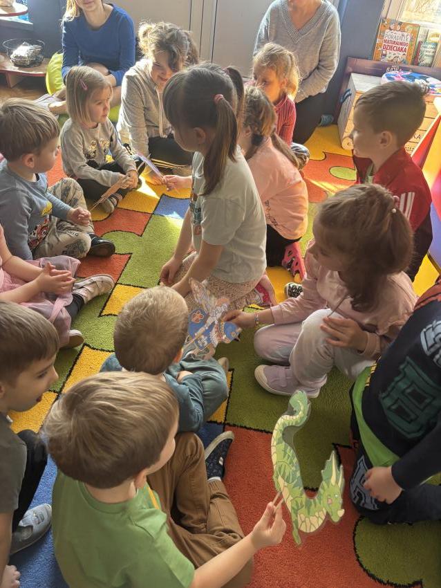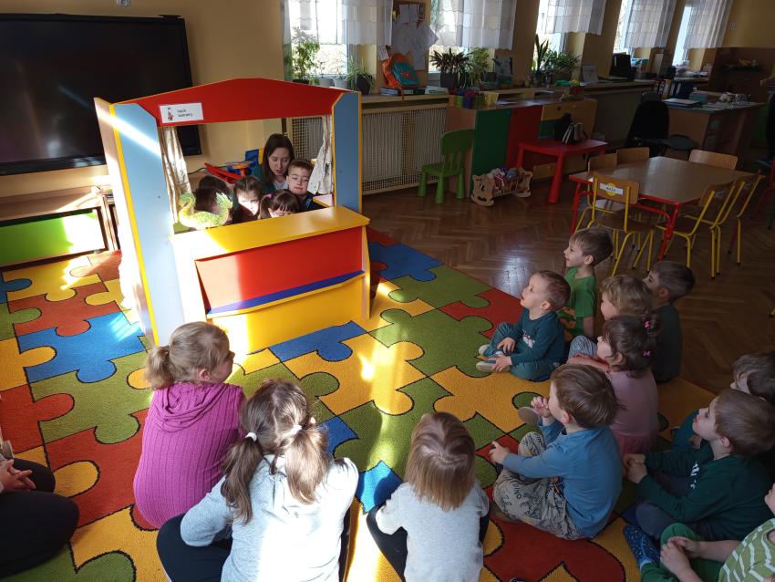Dzieci z grupy IV zaprosiły najmłodszych kolegów na teatrzyk pt. ,,Legenda o Smoku Wawelskim"
