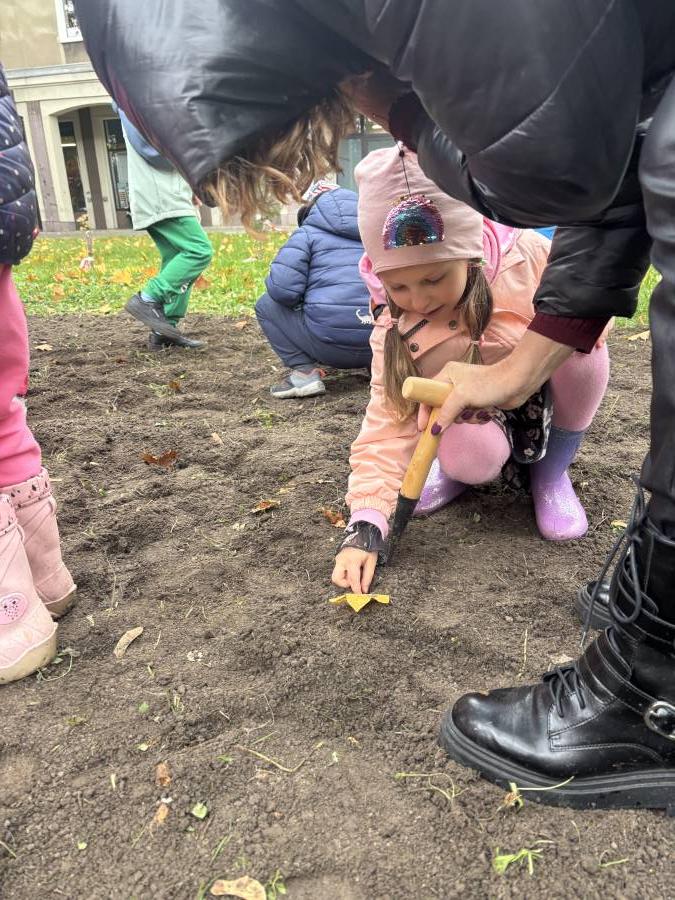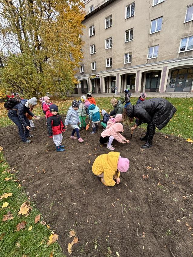 Grupy 3 i 4 wzięły udział w akcji sadzenia krokusów ,,przedszkolaki dla nowej huty'' w ramach akcji 760 krokusów na 76 urodziny Nowej Huty. Już wiosną na skwerze przy skrzyżowaniu ulic: Struga, Żeromskiego i Wojciechowskiego będzie można podziwiać nasze kwietne dzieło.