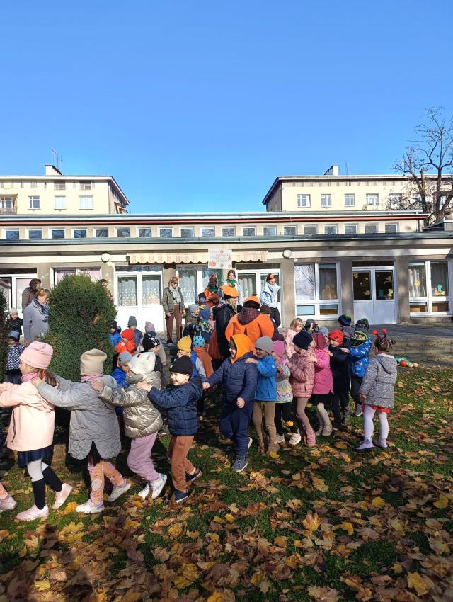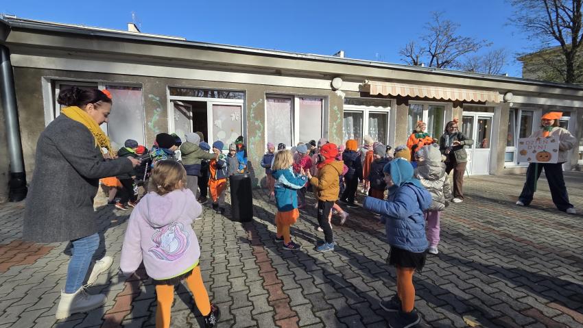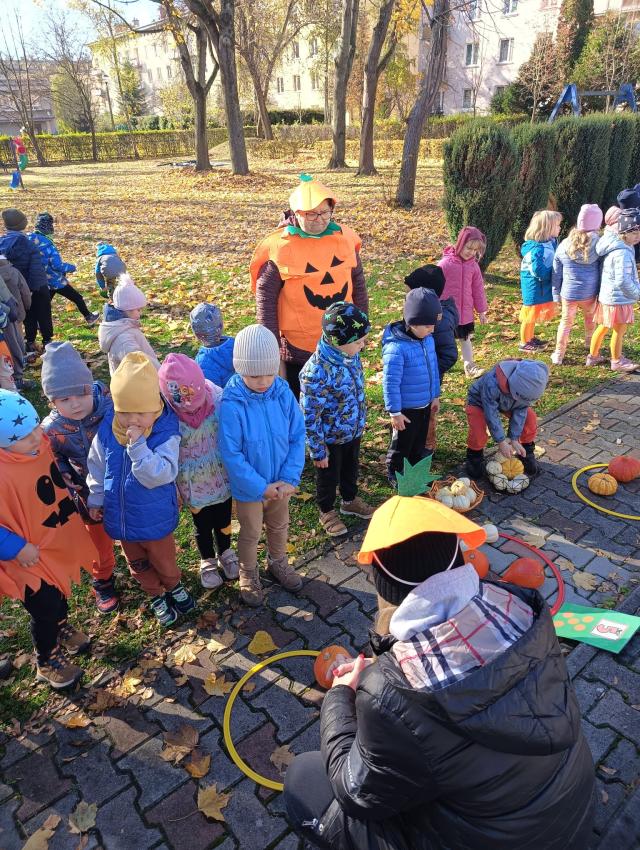 W ostatni październikowy dzień nasz ogród przedszkolny zamienił się w prawdziwą dyniową krainę! Dzieci w kolorowych strojach uczestniczyły w wyjątkowym święcie - DNIU DYNI. Sportowe konkurencje rozgrzały wszystkich do czerwoności od dyniowego slalomu po rzuty do celu. Wspólne odśpiewanie piosenek tworzyło niezwykłą atmosferę. Na zakończenie odbyła się sesja zdjęciowa pełna kolorów, uśmiechów i dyniowych dekoracji.