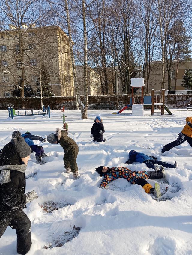 Dzisiaj, 9.01.2026r. grupa IV korzystała z uroków zimy. Robiliśmy aniołki na śniegu i urządziliśmy bitwę śnieżną!;)