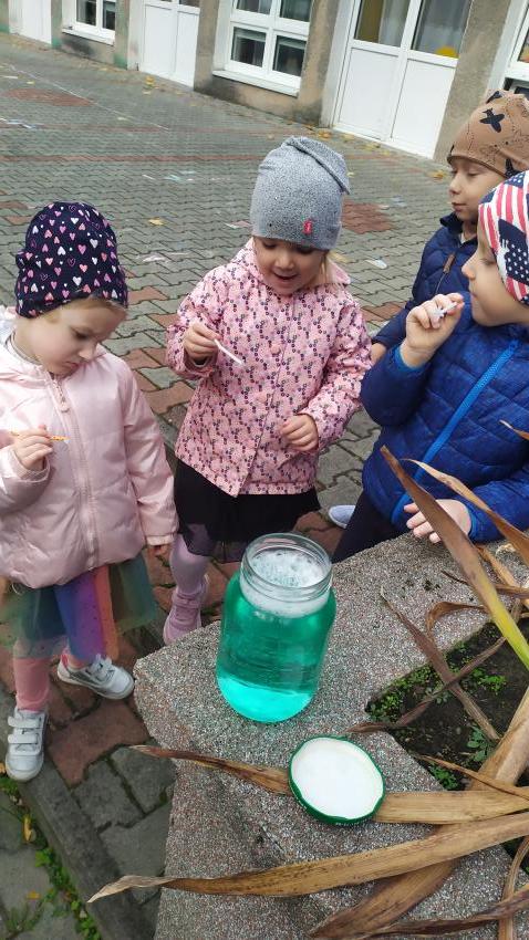 Korzystając ze sprzyjającej aktywności na świeżym powietrzu aurze, dzieci z grupy II spędzają na zewnątrz każdą wolną chwilę:) A przy okazji ćwiczyliśmy nasze narządy artykulacyjne puszcając przez słomki bańki mydlane, do których płyn zrobiliśmy sami w sali:) Ale była zabawa!
