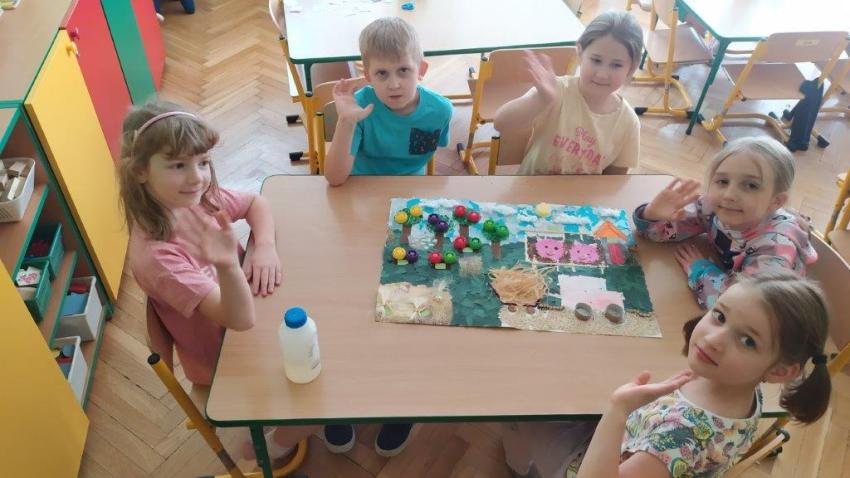 W tym roku byliśmy uczestnikami programu edukacyjnego ,,Skąd się biorą produkty ekologiczne?" organizowanego przez Państwowy Powiatowy Inspektorat Sanitarny w Krakowie. Chętnie wzięliśmy zatem udział w skierowanym do uczestników tego programu konkursie plastycznym o tym samym tytule. Odpowiedź na pytanie ,,Skąd się biorą produkty ekologiczne" nie była dla nas trudna, ponieważ podczas zajęć poznawaliśmy odpowiedzi na te i inne równie ważne pytania.. Wiemy czym jest rolnictwo i produkty ekologiczne, co to zdrowy styl życia, jak dokonywać lepszych dla naszego zdrowia wyborów, poszerzyliśmy też wiedzę o zdrowym stylu życia i nawykach higienicznych. To chyba połączenie dobrego przygotowania i oczywiście niewątpliwego talentu plastycznego przyniosło nam wyróżnienie. Praca plastyczna naszej grupy została doceniona przez zacne jury. A nam najbardziej podobało się to, że tak świetnie idzie nam współpraca.