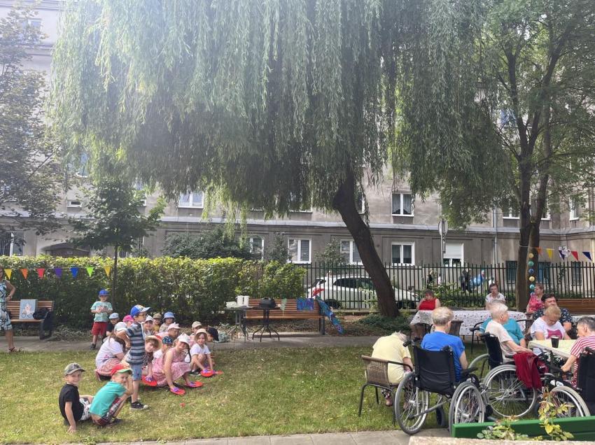21 czerwca, starszaki z grupy IV wzięły udział w kolejnym spotkaniu z mieszkańcami Domu Pomocy Społecznej (os. Szkolne). Pogoda była fantastyczna, dlatego integracja odbyła się w ogrodzie. Zaprezentowaliśmy nasze umiejętności artystyczne, bawiliśmy się z mieszkańcami, "czarowaliśmy" niezwykłe kwiaty. Było po prostu super!