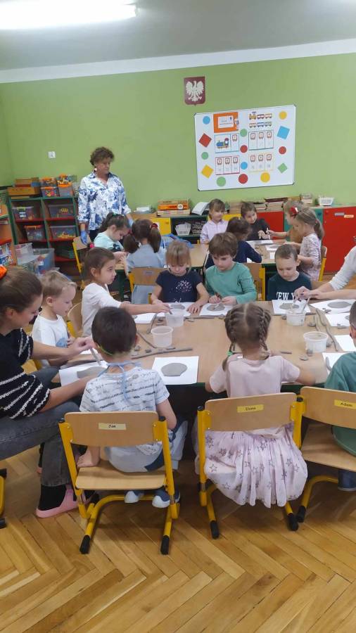 W ramach projektu ?Gramy zmysłami? przygotowaliśmy masę plastyczną ?piankolinę?. Zabawa z różnego rodzaju masami, które można samodzielnie wykonać w domu, rozwija umiejętności manualne i manipulacyjne, doskonali precyzję rąk, usprawnia koordynację wzrokowo - ruchową, pobudza zmysł dotyku przez stymulację czucia powierzchniowego i głębokiego.