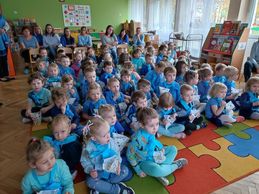 Nasze Przedszkole włączyło się w akcję zorganizowaną przez UNICEF, by uczcić Rocznicę uchwalenia Konwencji o prawach dziecka. Radosne świętowanie miało na celu uświadomienie wszystkim nam, że prawa dziecka są ważne i każde dziecko ma prawo z nich korzystać. Był to radosny dzień z ważnym przesłaniem w ramach którego; ubraliśmy się wszyscy na niebiesko, w każdej grupie dzieci uczestniczyły w zajęciach dydaktycznych przybliżającymi prawa dziecka. Wspólnie obejrzeliśmy film edukacyjny ( zajadając się popcornem), zaśpiewaliśmy wspólnie piosenkę trzymając się za ręce i przeszliśmy radosnym pochodem z niebieskimi balonami ( ze względu na pogodę na terenie przedszkola). Sylwety naszych dłoni stworzyły piękną dekorację, która stanowiła piękne i znaczące tło.