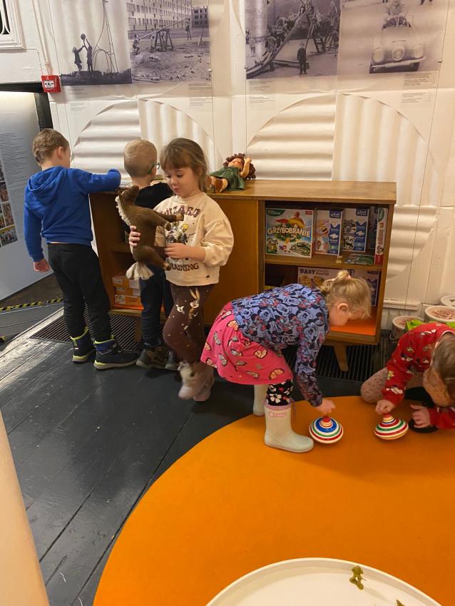 W dniu 21.11.2023 dzieci z grupy trzeciej odwiedziły Muzeum Nowej Huty, gdzie obejrzeliśmy wystawę ,,Trzepaki, Reksio, Atari"