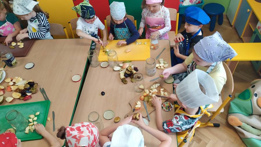 Grupa IV, wzorem roztropnej wiewiórki, przygotowała jesienne przetwory. Już nie możemy się doczekać, gdy zimą wypijemy przepyszne kompoty, które zrobiliśmy sami.