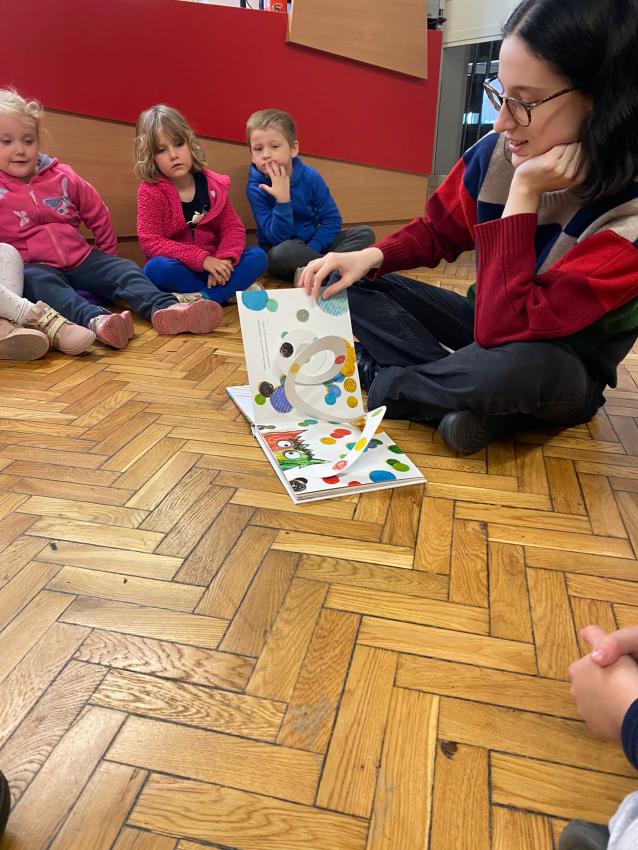 Starszaki wzięły udział w ciekawej lekcji bibliotecznej. Pani bibliotekarka opowiedziała o zakamarkach tego niezwykłego miejsca oraz o tym jak stać się czytelnikiem. Każdy z nas mógł poczuć się jak artysta tworząc dzieło sztuki oraz przygotował zakładki z godzinami otwarcia biblioteki.