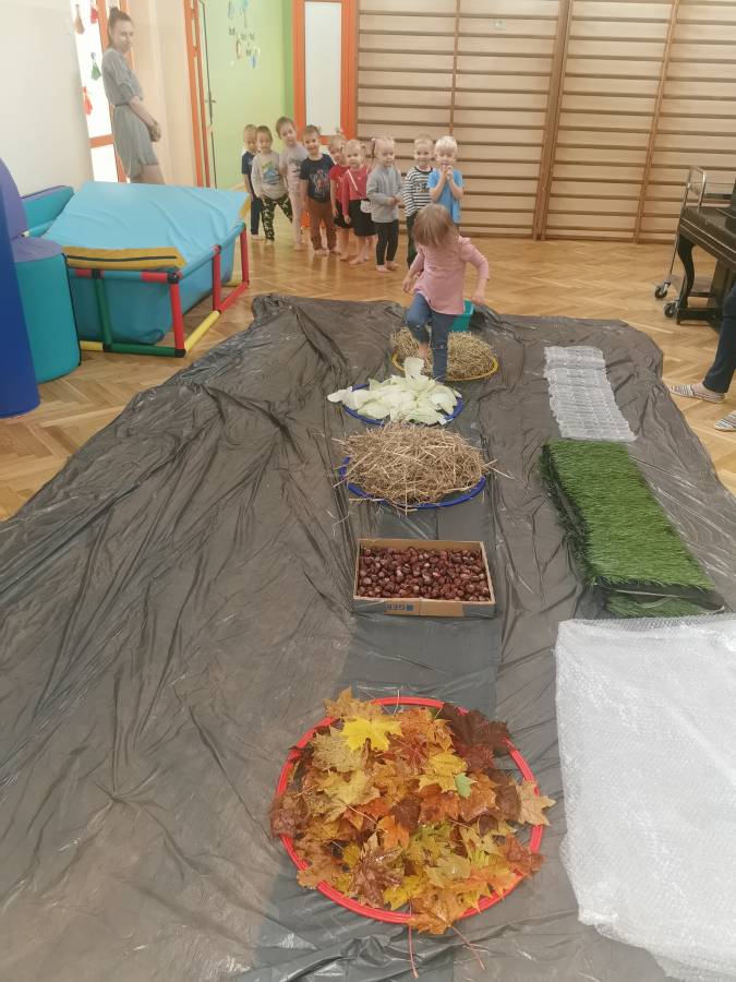 Grupa I wykonała październikowe zadanie z projektu ?Gramy zmysłami?. Maluchy dzielnie pokonywały tor sensoryczny składający się z różnorodnych materiałów (siana, słomy, liści, folii, kaszy). Tego typu zabawy stymulują mięśnie, wzbogacają doznania sensoryczne oraz przeciwdziałają płaskostopiu.