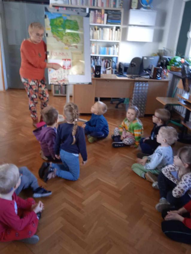 W dniu 9 listopada byliśmy na zajęciach edukacyjnych w bibliotece na osiedlu Zgody. Poznaliśmy historię naszej Ojczyzny, symbole narodowe, śpiewaliśmy hymn Polski i kolorowaliśmy flagę na której był orzeł Polski.