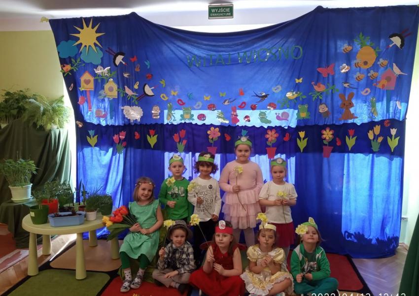 Aby uczcić nadejście Wiosny dzieci z grupy II przygotowały przedstawienie pt. ,,SPOTKANIE Z WIOSENKĄ".
