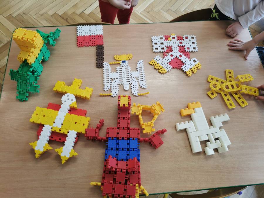 Dzieci z grupy IV wykazały się dużą kretaywnością budując z różnego rodzaju klocków godło naszego kraju.