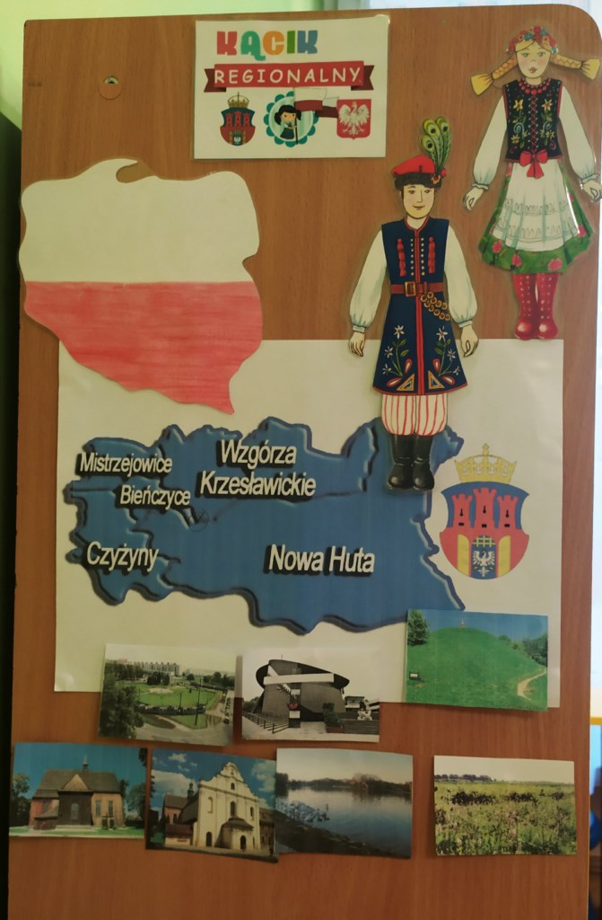 U starszaków pojawił się nowy kącik tematyczny. W kąciku regionalnym gromadzimy różne skarby które pozawalają nam odkrywać naszą mała ojczyznę. Swoją wiedzę w ramch "Bajkowego Krakowa w Podaniach i Legendach" poszerzamy również dzięki pomocy rodziców, którzy wzbogają nasz kącik swoimi skarbami.