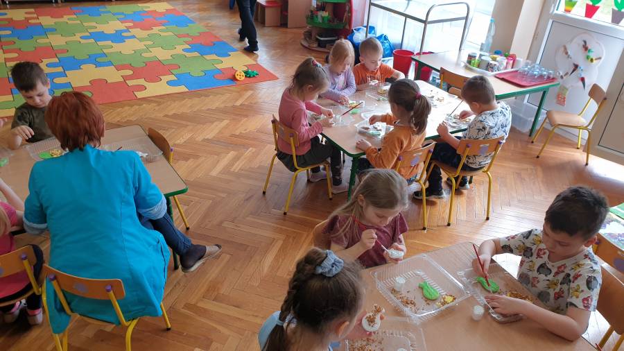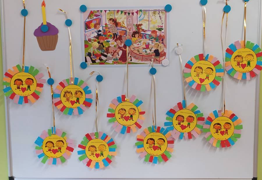 Były tańce, życzenia i dużo wesołej zabawy a na koniec każdy wykonał swój Medal Przedszkolaka