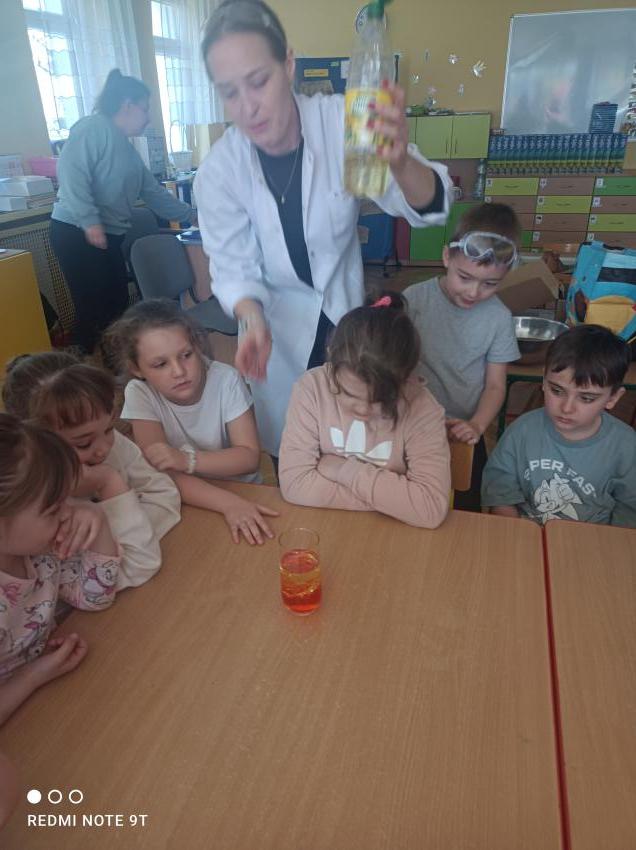 W piątek 04.04.3025 r. odwiedziła nas mama Franciszka z grupy 2 i Leona z grupy 4, która przybliżyła nam tajniki swojej pracy. Podczas spotkania dowiedzieliśmy się na czym polega praca chemika. Uczestniczyliśmy w zaproponowanych przez mamę doświadczeniach i eksperymentach.