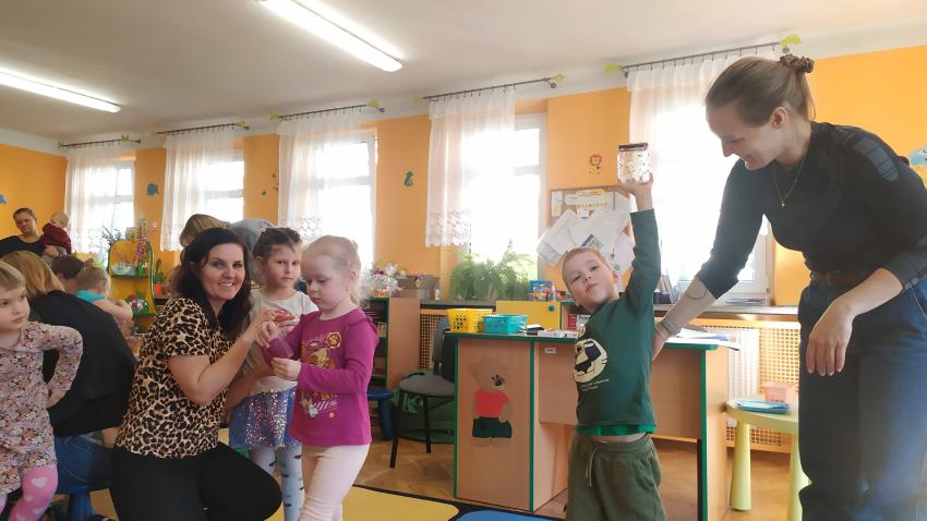 W czwartek 3 kwietnia dzieci z grupy II wspólnie z rodzicami uczestniczyły w zajęciach otwartych. Pokazaliśmy jak świetnie bawimy u nas na co dzień. Na koniec spotkania każdy z nas przygotował słoik "Nudzi-mi-się", do którego będziemy wymyślać propozycje różnych aktywności, które w naszych rodzinach pomagają walczyć z nudą.